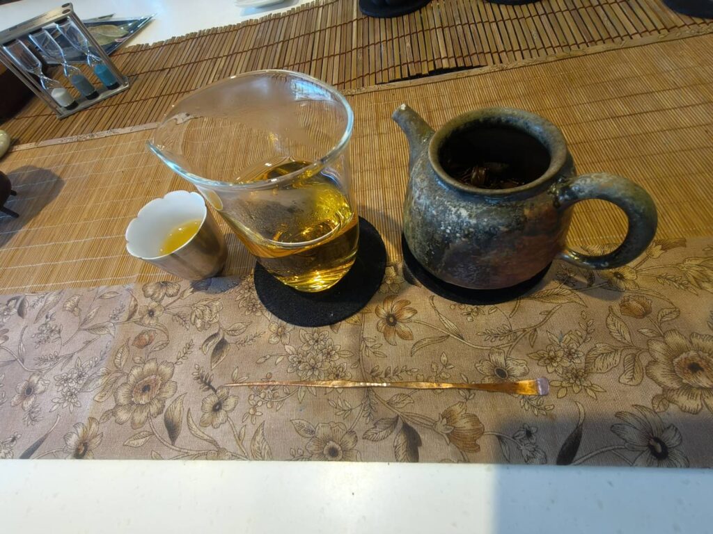 那年秋,荔枝掛枝。青裡透紅,半熟未熟,就跟人生一樣,總在青澀中等一個落下的時機。我去古廟側尋老和尚。草堂枯寂,像被時間遺忘的褶皺。四壁空蕩,唯他一人、一盞茶、一縷說不出的禪味,獨自撐起這方乾坤。他點亮琉璃。燭火斑駁,像一群誤入冰壺的螢火蟲,一屛息便卡在那冷光裡。鐵爐炭紅,無煙,悄悄地啃噬木石,聲如老蠶食桑。水壺咕咕低吟,那種沉沉的節奏,竟與《幽蘭》合拍,低頻震盪,緩緩滲進骨髓。